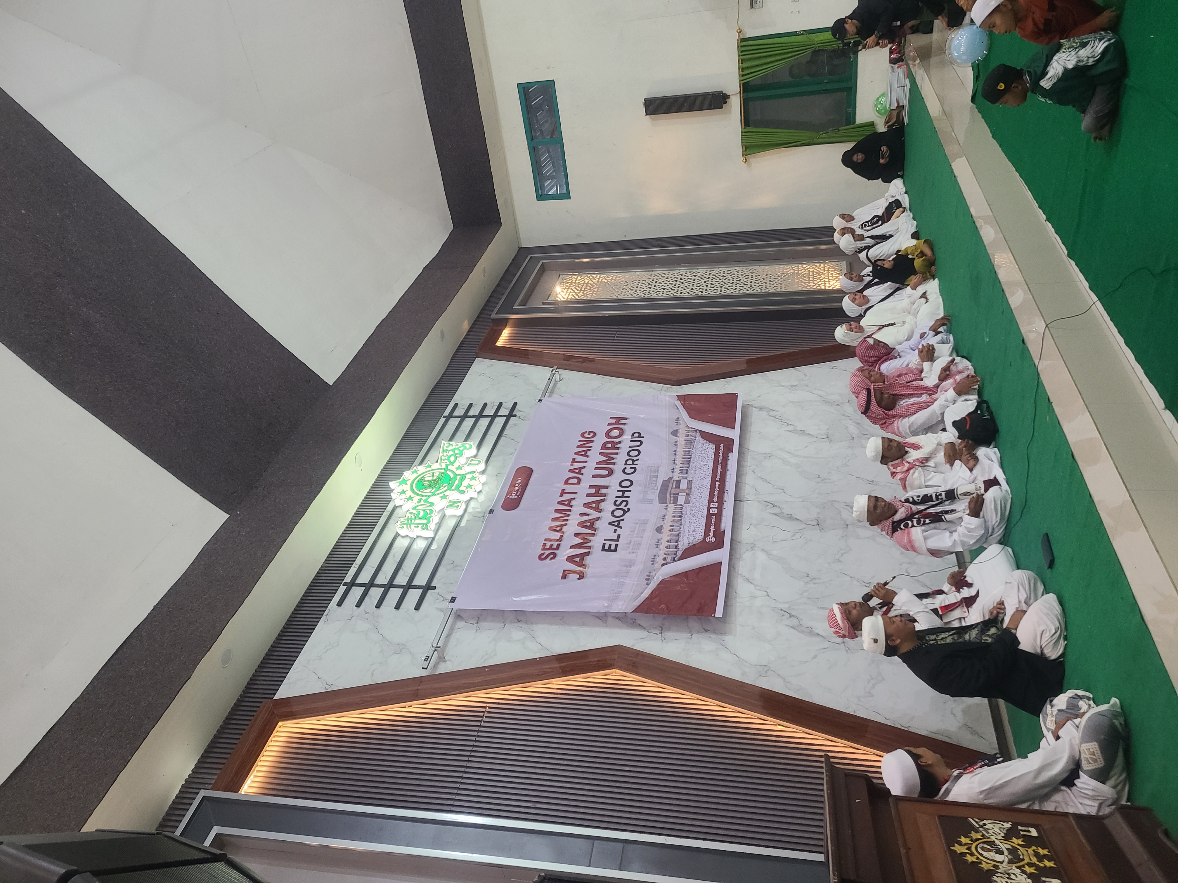 Pihak El-Aqsho Group bersama tokoh agama menyampaikan sambutan hangat, serta mengajak hadirin untuk bersyukur atas kelancaran perjalanan umroh kali ini.