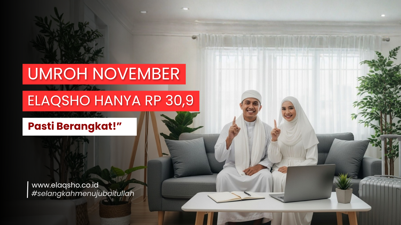 Umroh di bulan November lebih hemat, nyaman, dan khusyuk. Daftar bareng Elaqsho—promo spesial Rp30,9 juta, seat terbatas!